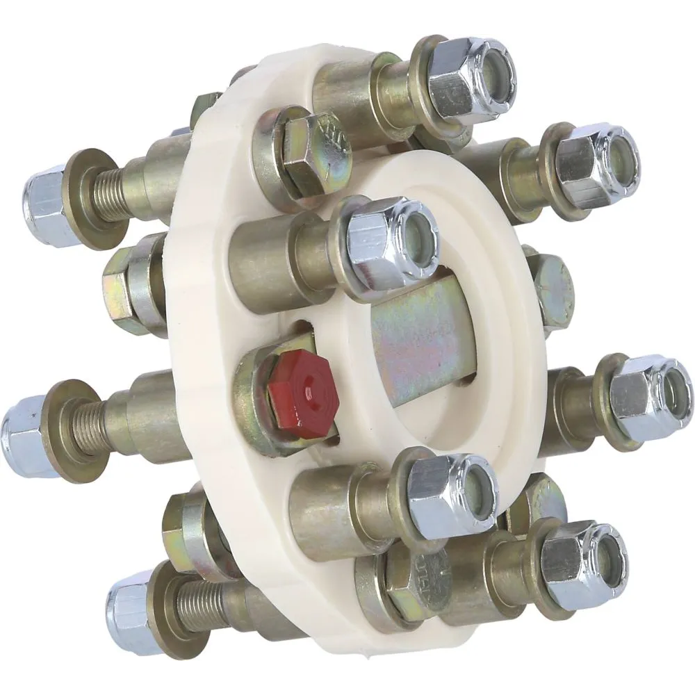 Disque en polyuréthane moulé absorbant les chocs, vibrations, bruits, poussées de ligne d'arbre et désalignements temporaires. Isole électriquement la ligne d'arbre. Ni usure, ni entretien. Fourni avec visserie complète.
