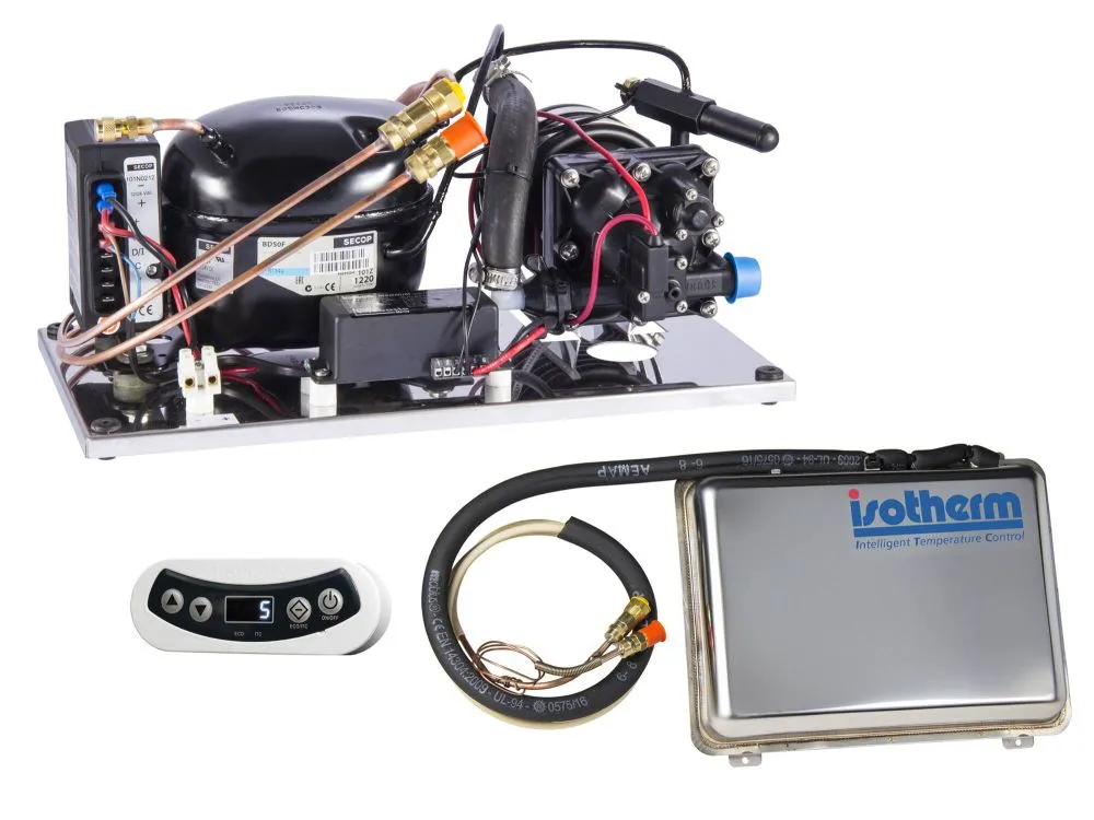 Températures dans le bac +4°C / air ou eau 22°C. *Conso en 12V - moyenne / maxi sous chargeur ou moteur tournant avec 13,2V mini au compresseur.