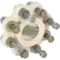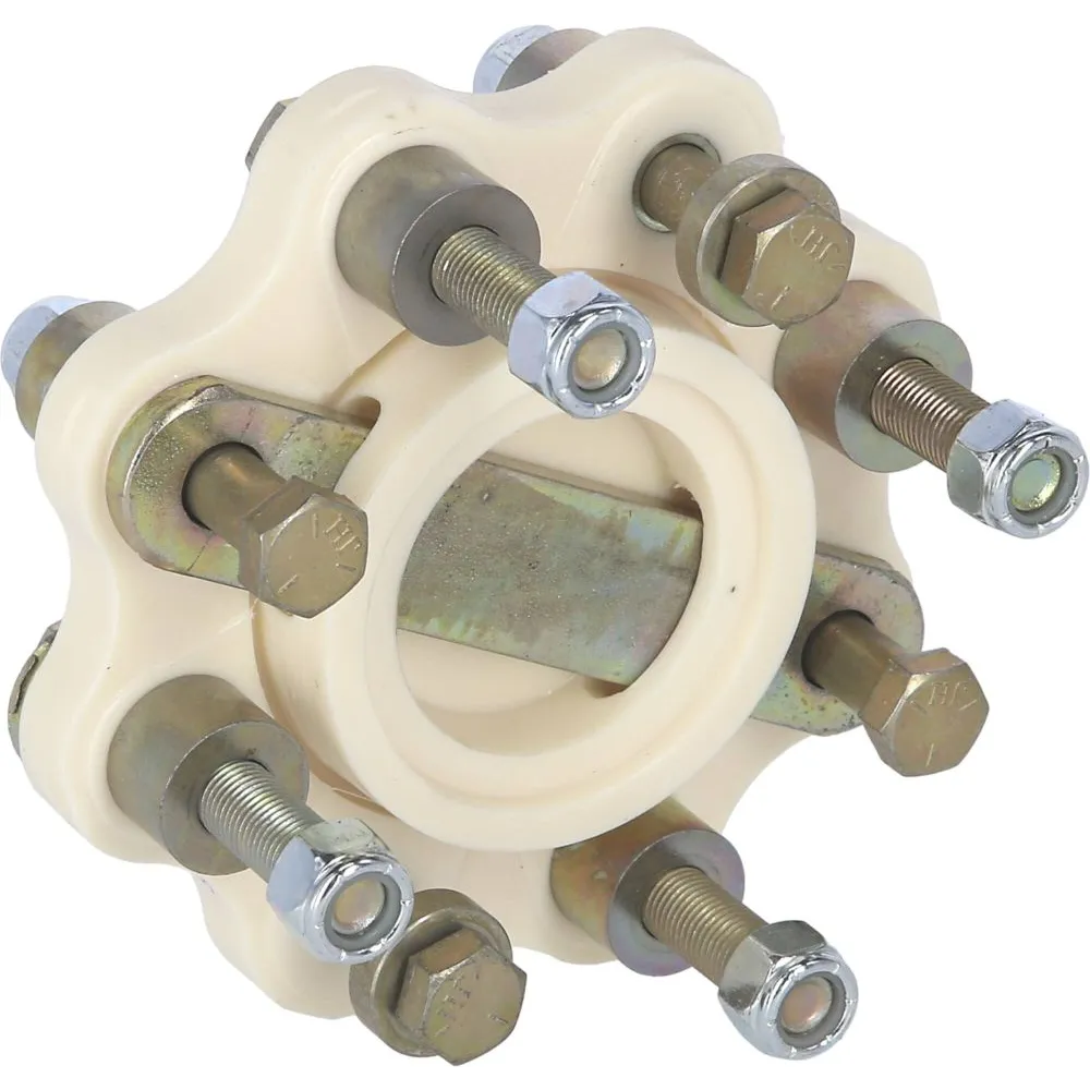 Disque en polyuréthane moulé absorbant les chocs, vibrations, bruits, poussées de ligne d'arbre et désalignements temporaires. Isole électriquement la ligne d'arbre. Ni usure, ni entretien. Fourni avec visserie complète.