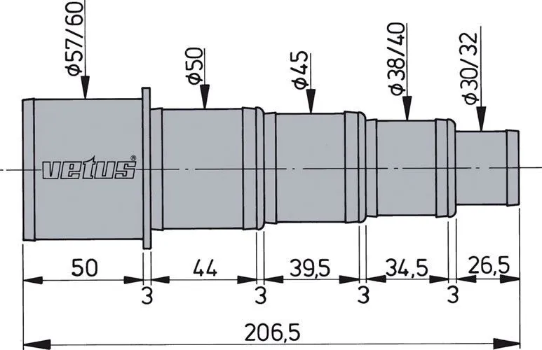 | Diamètre entrée/sortie : | 32/59 mm |