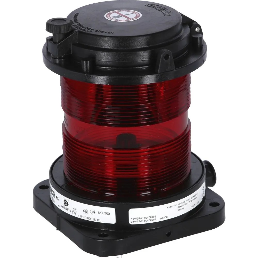 Série homologuée VERITAS. Les feux marqués d’une ancre sont homologués pour la navigation fluviale européenne. Corps en polycarbonate noir renforcé de fibre de verre et matériaux inoxydables. Norme de protection IP56. Disponible en 24V. Existe également en 12V. Disponible avec ampoule LP281 ou LP282.