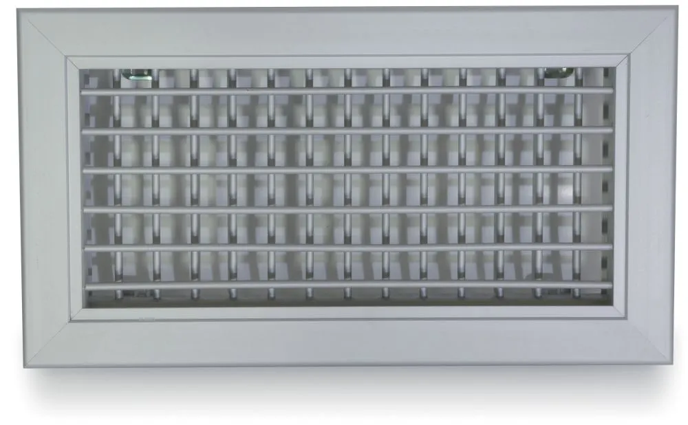 Grilles de soufflage en aluminium anodisé argent.