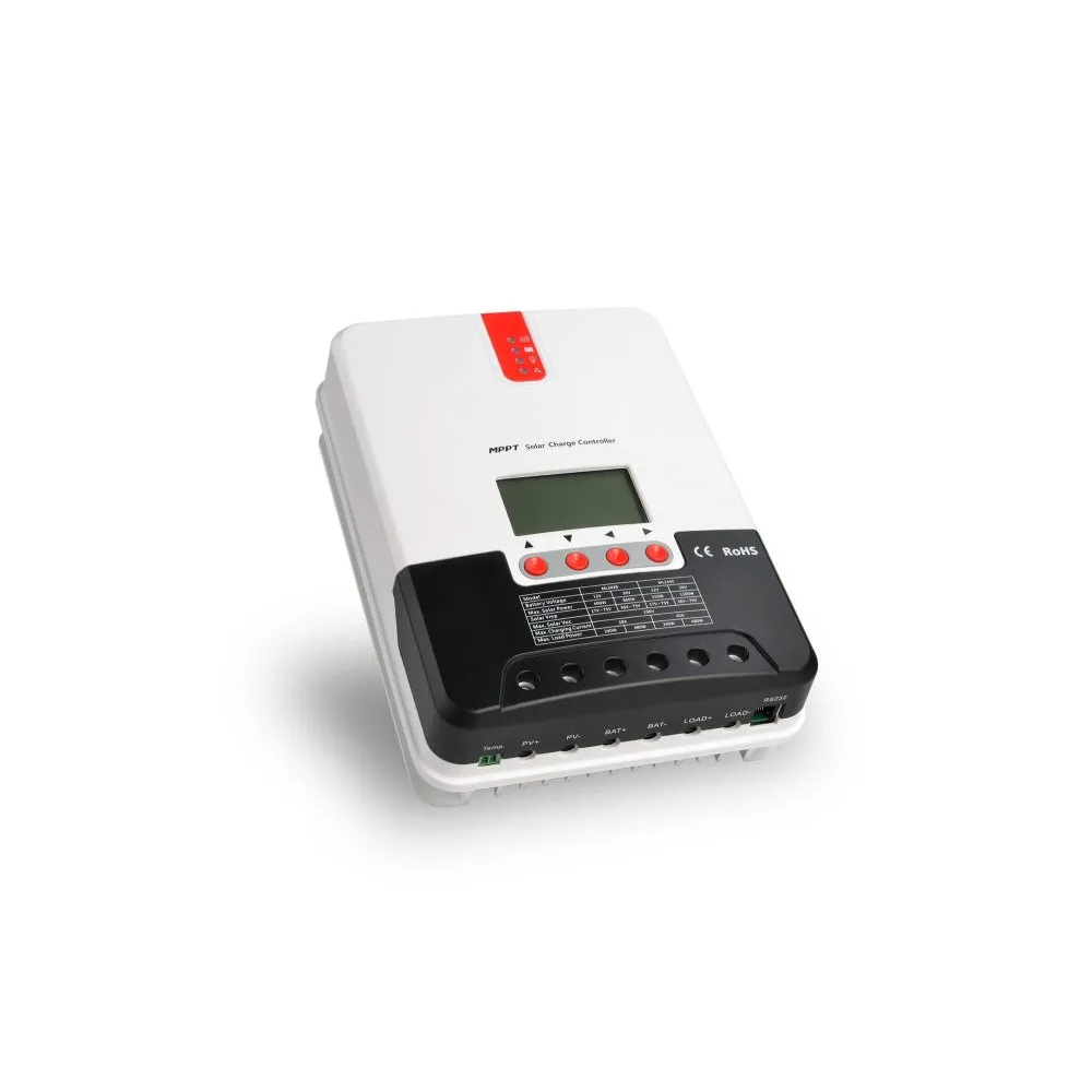 Régulateur de charge photovoltaïque doté d’un algorithme de suivi du point de puissance maxi (MPPT), ce qui permet, outre l’exploitation des modules PV au maximum de leurs capacités même en conditions d’ensoleillement changeantes ou dégradées, d’utiliser des modules de tension non standard et de simplifier le câblage en raccordant les modules en série plutôt qu’en parallèle.