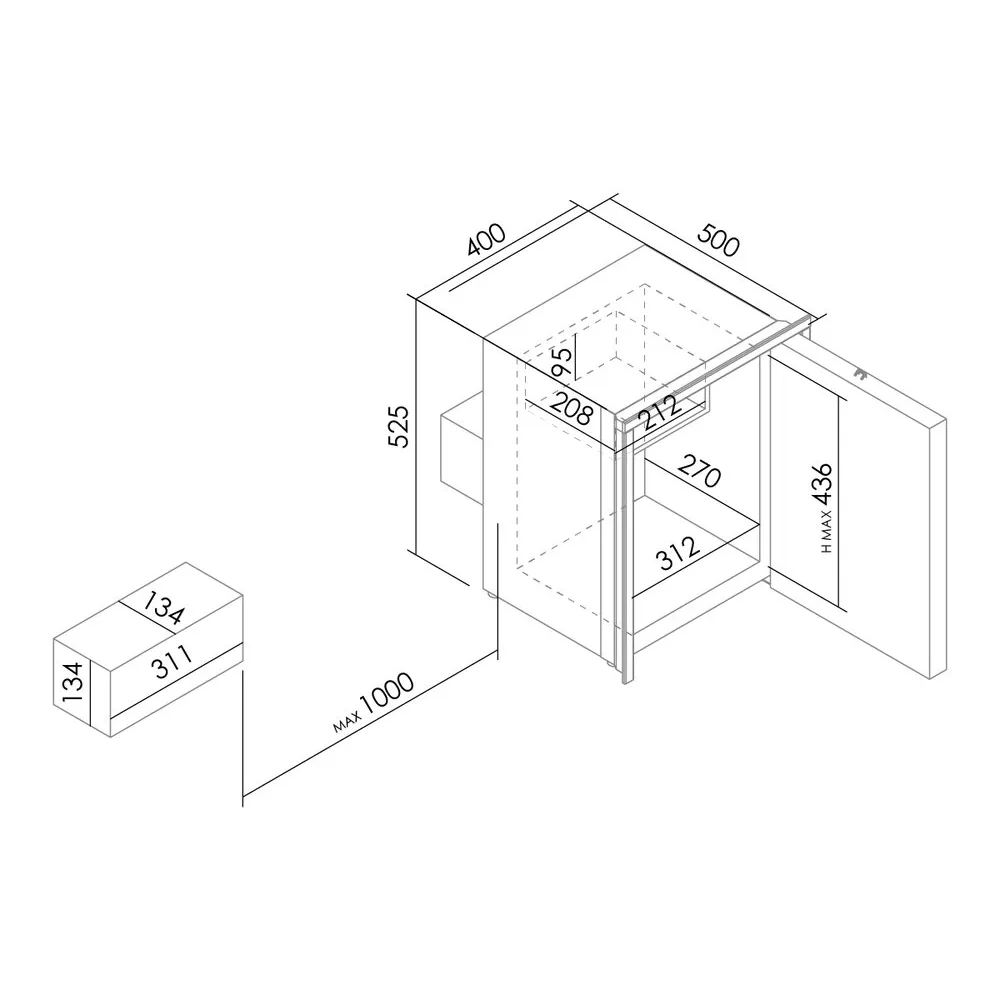 | Dimensions L x L x P (mm) : | 400x525x500mm (Compresseur déportable à 1m sur le 42L (permet de gagner 115mm en profondeur). |