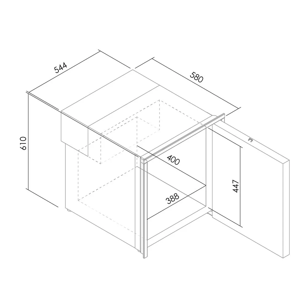 • Porte en inox AISI 304 avec traitement anti‑traces, résistante aux rayures, au sel, aux UV et à la condensation