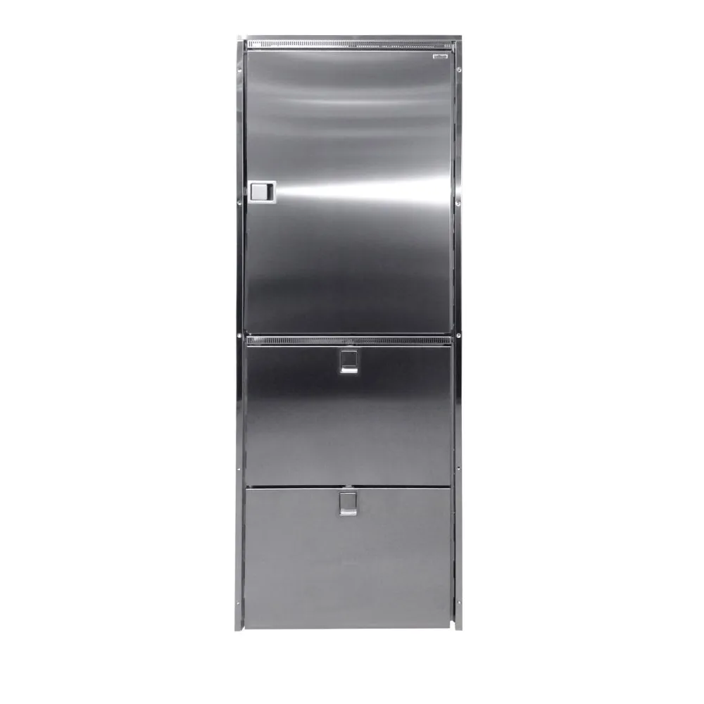 Le CRUISE COMBI LINE 320 INOX vous permet de bénéficier d’une grande capacité de réfrigération en combinant un réfrigérateur 160L en partie haute et deux tiroirs frigorifiques en partie basse. Cette solution polyvalente optimise le stockage des aliments et boissons tout en offrant un design inox Clean Touch, élégant, durable et facile à nettoyer même en environnement nautique.