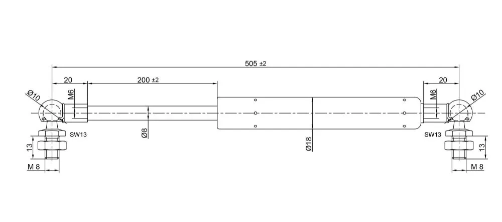 Vérins inox (1 lot de 2) course 200mm 200N