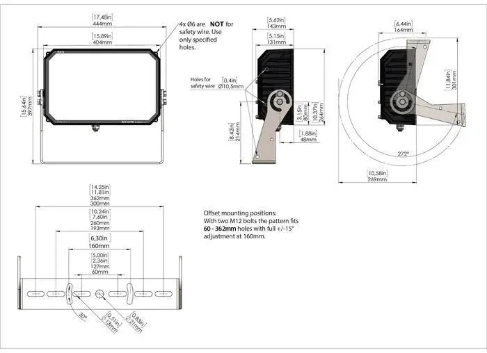Gamme de projecteur LED de 18 à 108W, jusqu’à 7560 lumens.