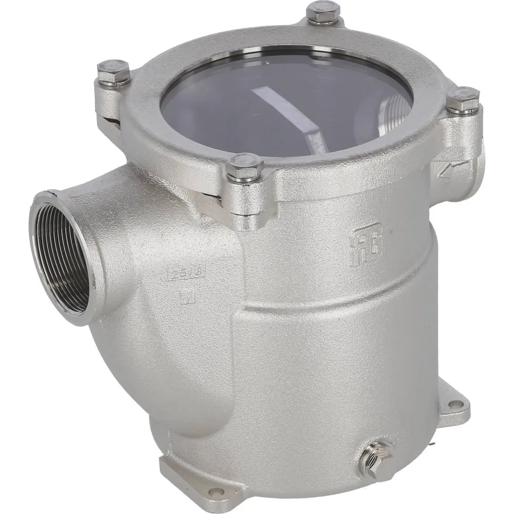 Corps en bronze nickelé, tamis et visserie en inox 316L.