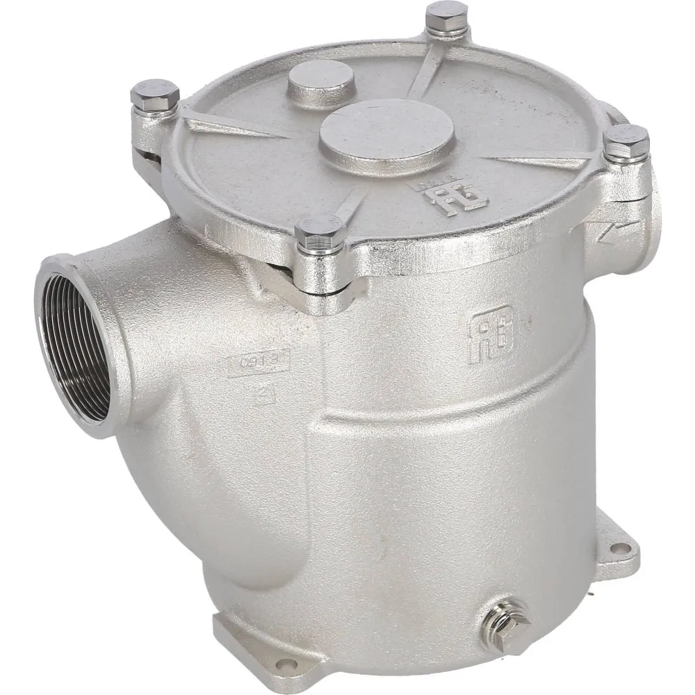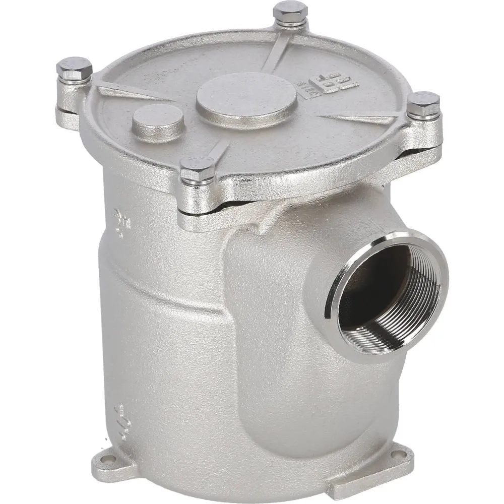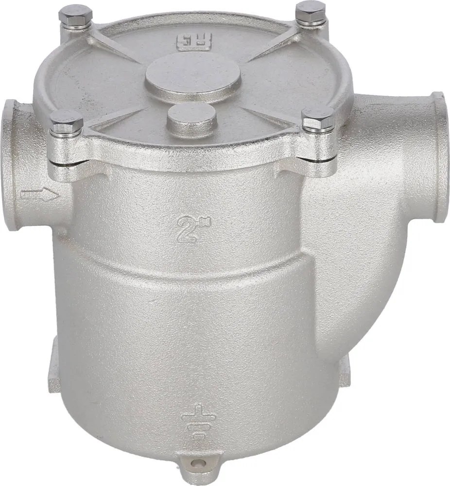 Corps en bronze nickelé, tamis et visserie en inox 316L.
