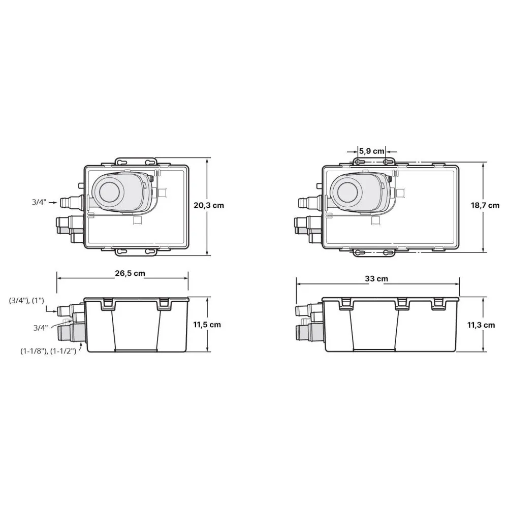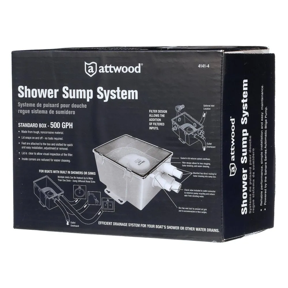 Vous avez le choix entre un bac standard et un bac de grande taille. Ils offrent un écoulement rapide de l'eau dans et hors du puisard. Le couvercle s'enclenche pour permettre une installation rapide (et un retrait pour le nettoyage) et comprend un joint d'étanchéité pour empêcher le débordement du puisard. Le puisard comprend un event pour éviter les poches d'air. Conforme ou supérieur à toutes les normes applicables 'ABYC et USCG.