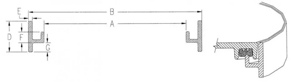 Dimension B : charnière non comprise. Joint de trappe sur demande suivant les modèles.