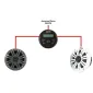 Un ensemble simple avec une source audio avec une petite façade à installer sur la console et une paire d'enceintes étanches.