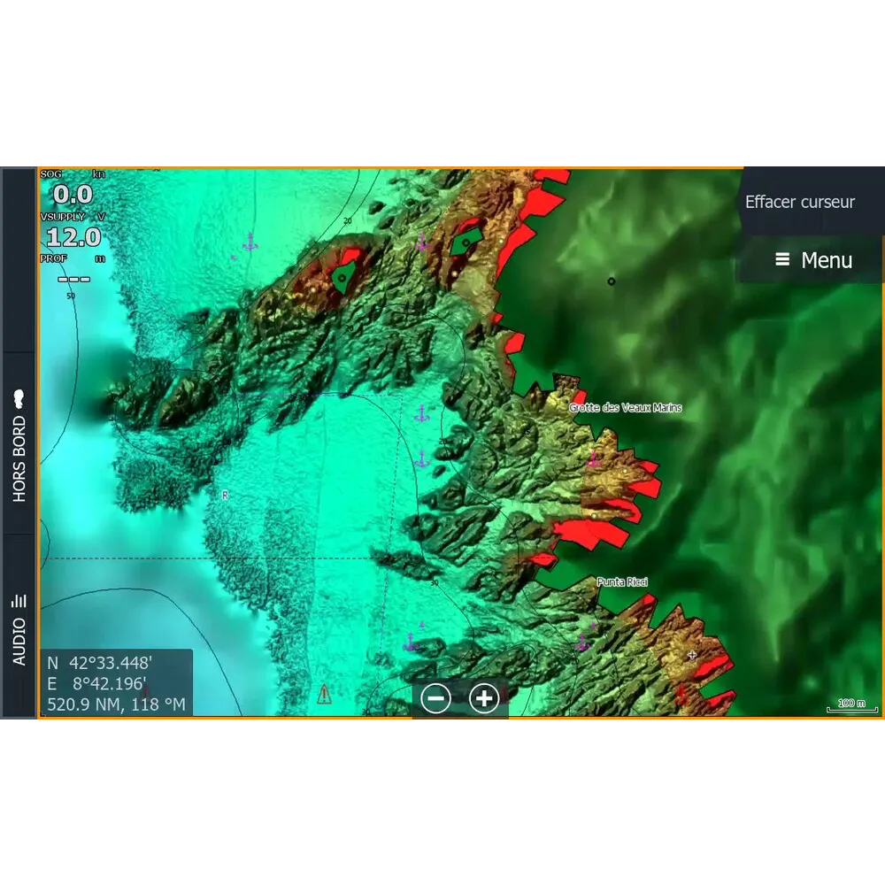 - Une précision de relief inégalée permettant d'identifier instantanément les hauts-fonds et les fosses.