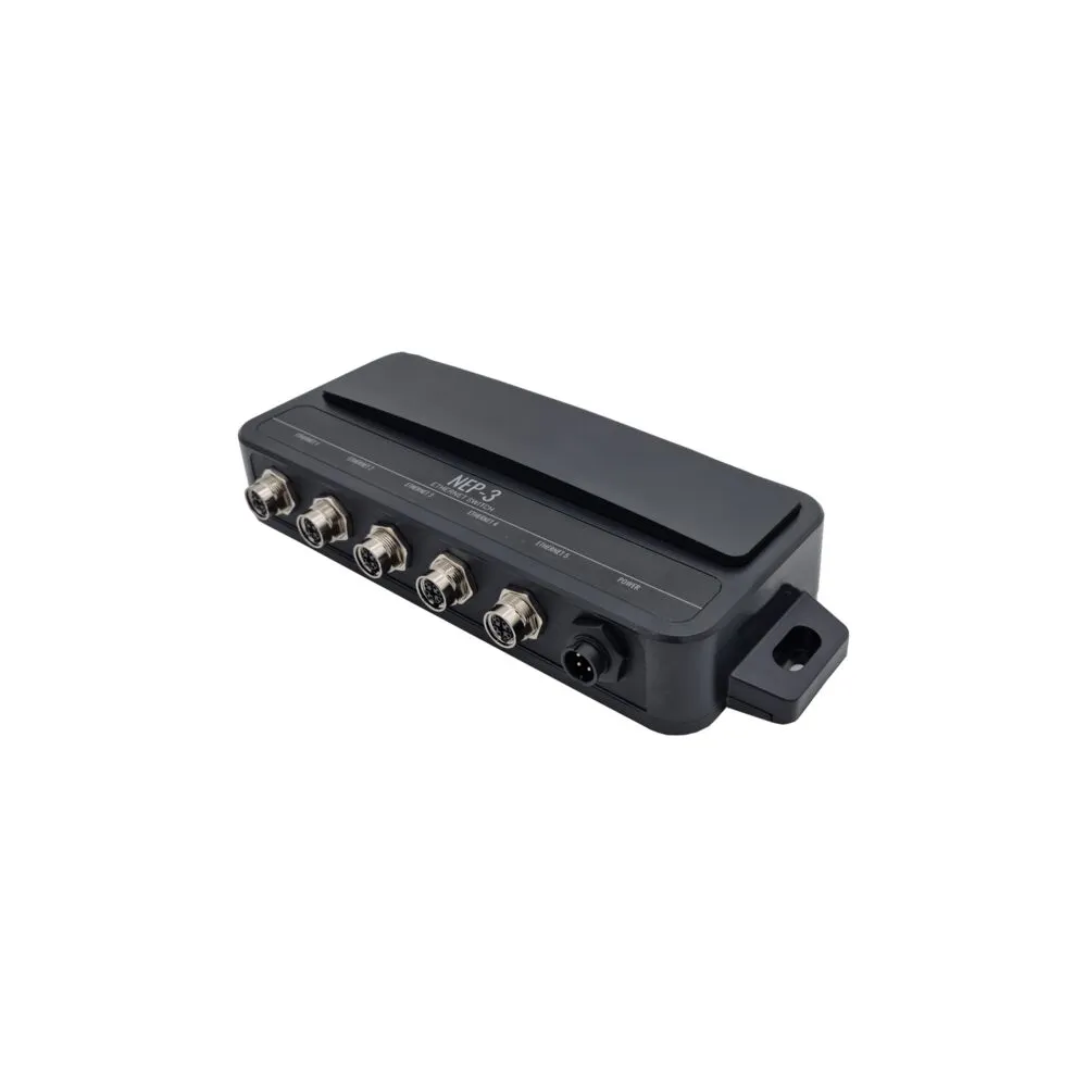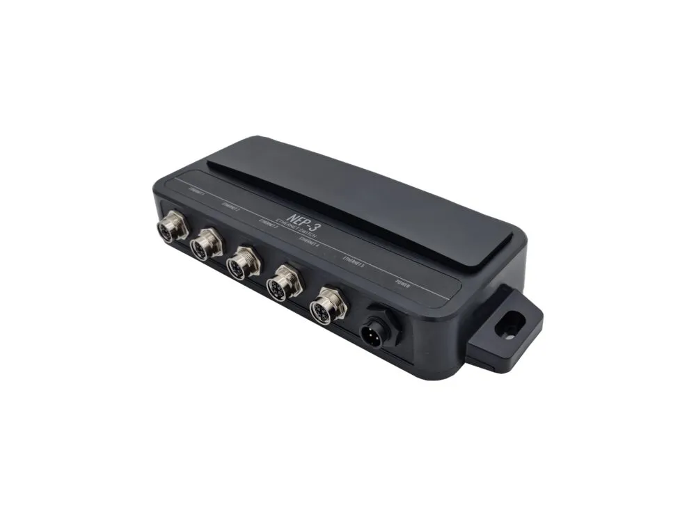 Le NEP-3 dispose de cinq ports Ethernet à prises spécifiques X-coded M12 GbE pour étendre votre système avec des écrans et des accessoires supplémentaires.